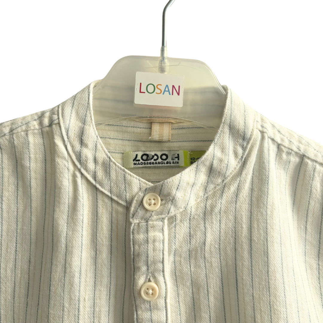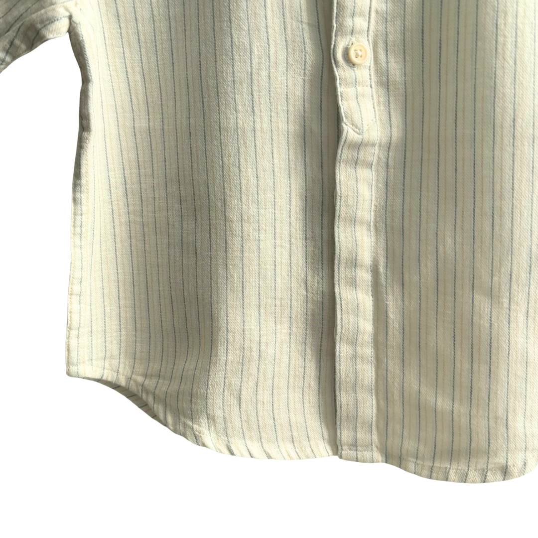 Chemise col mao écru avec des lignes bleu bébé garçon.
