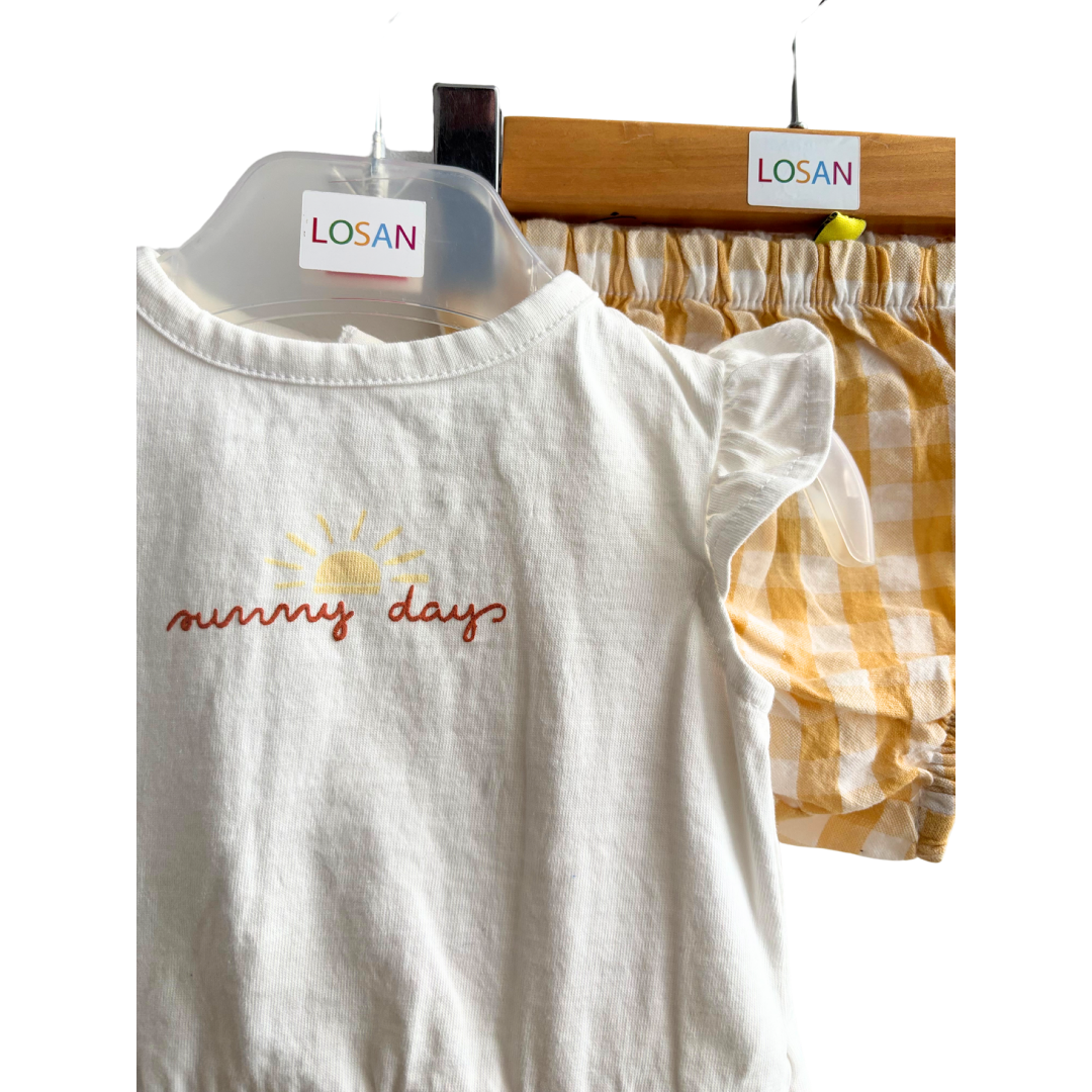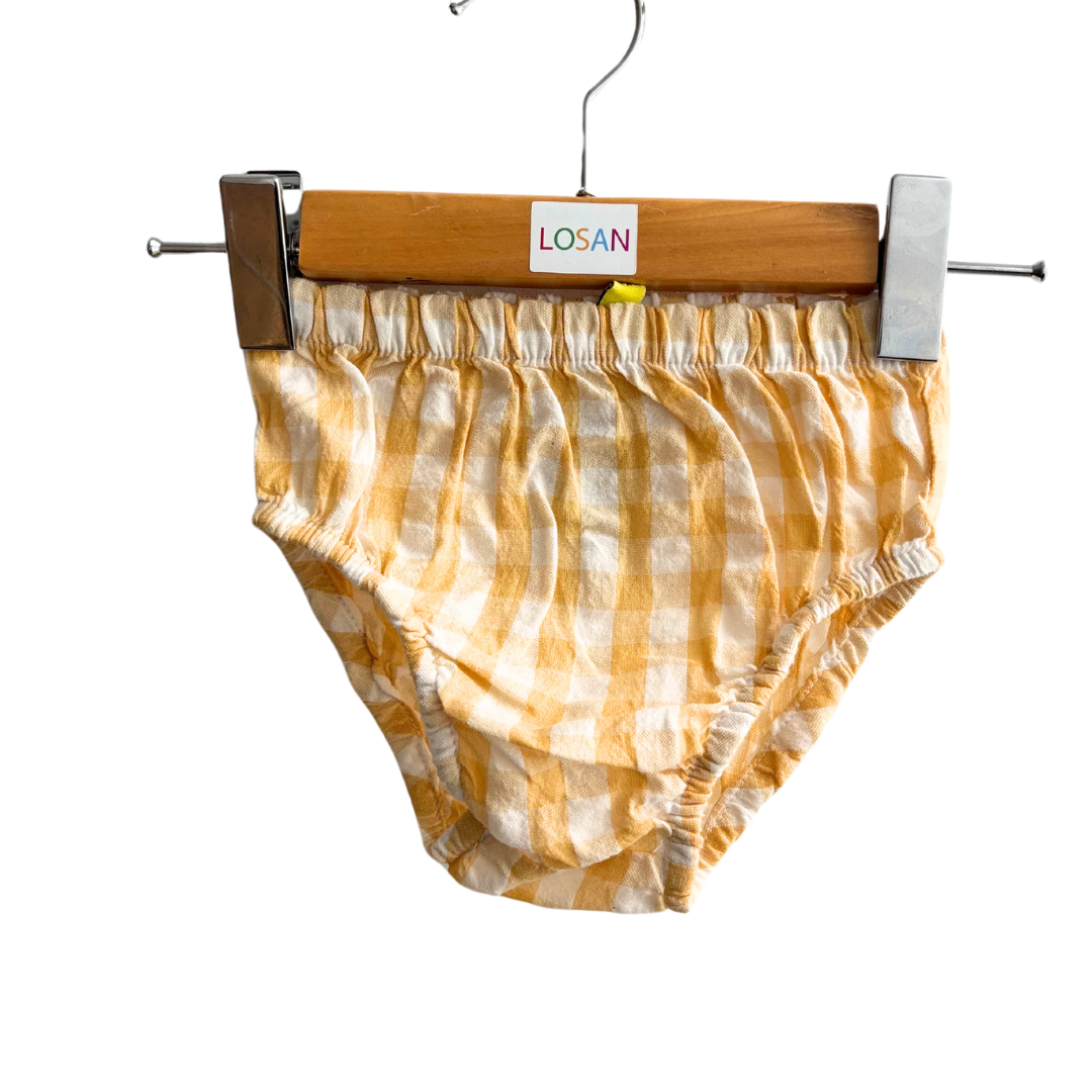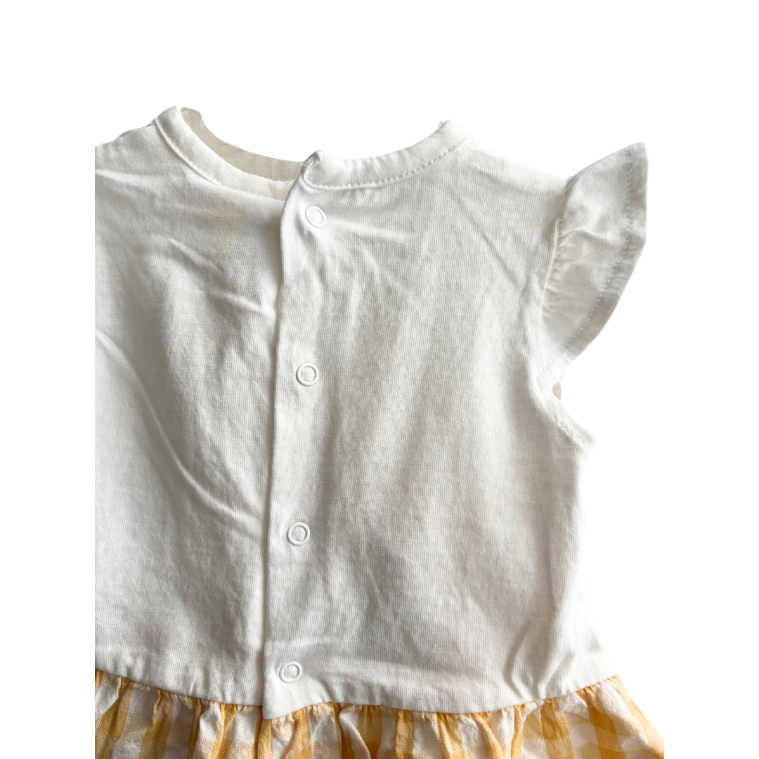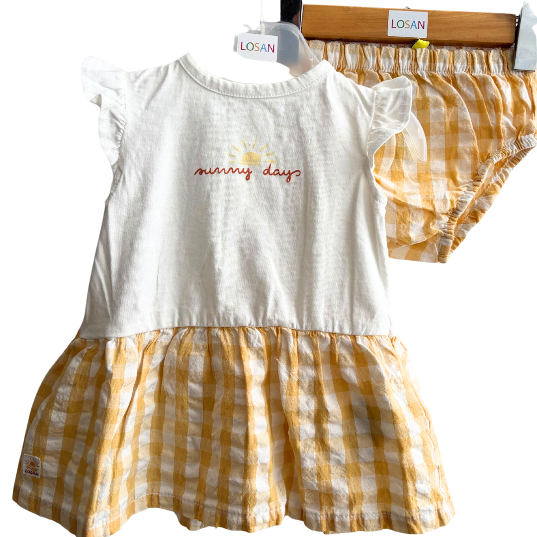 Robe bébé fille écru à carreau dans le bas avec sa culotte.