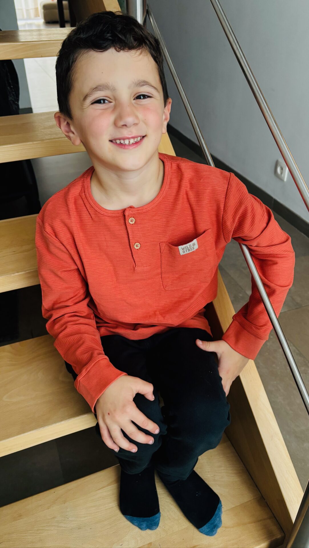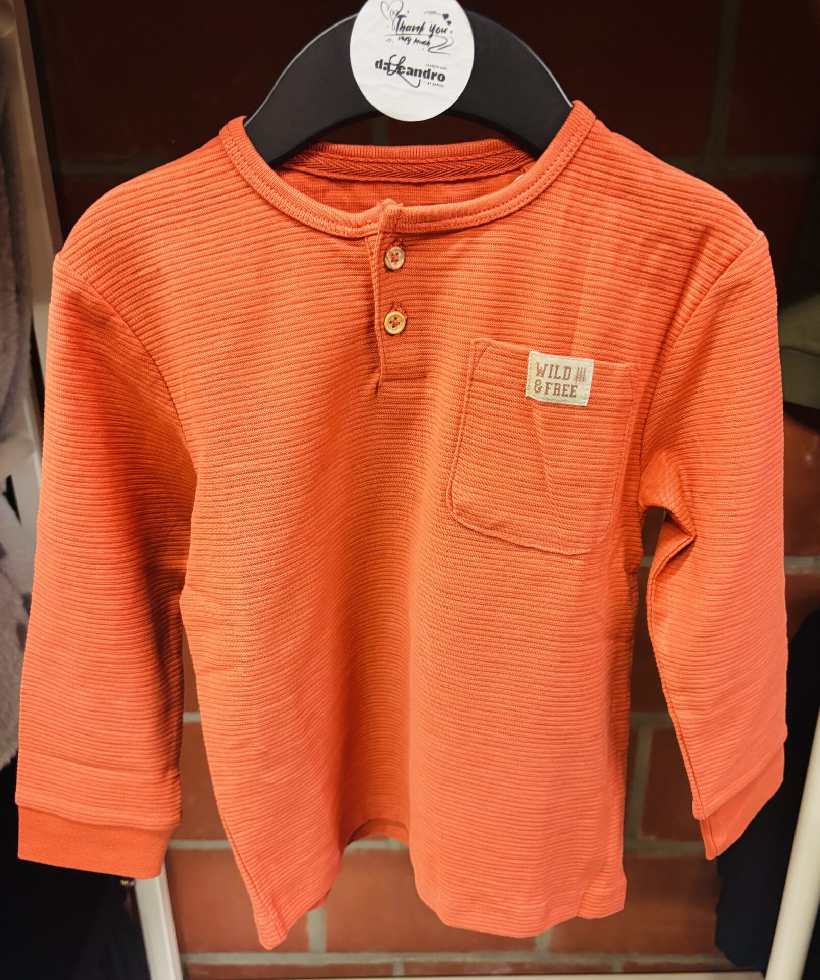 sweet orange avec bouton sur le devant, et poche sur le coté droit.