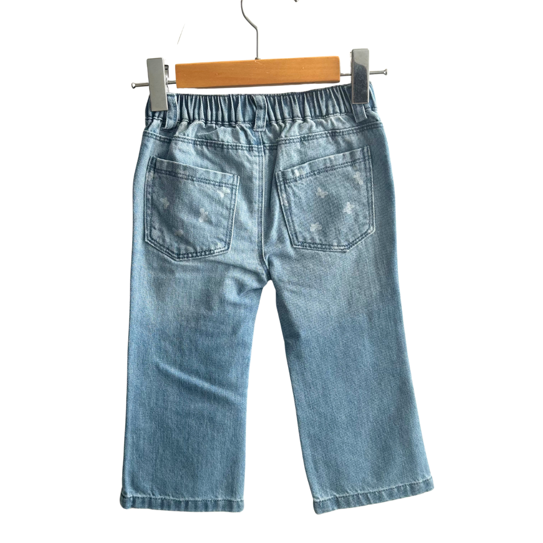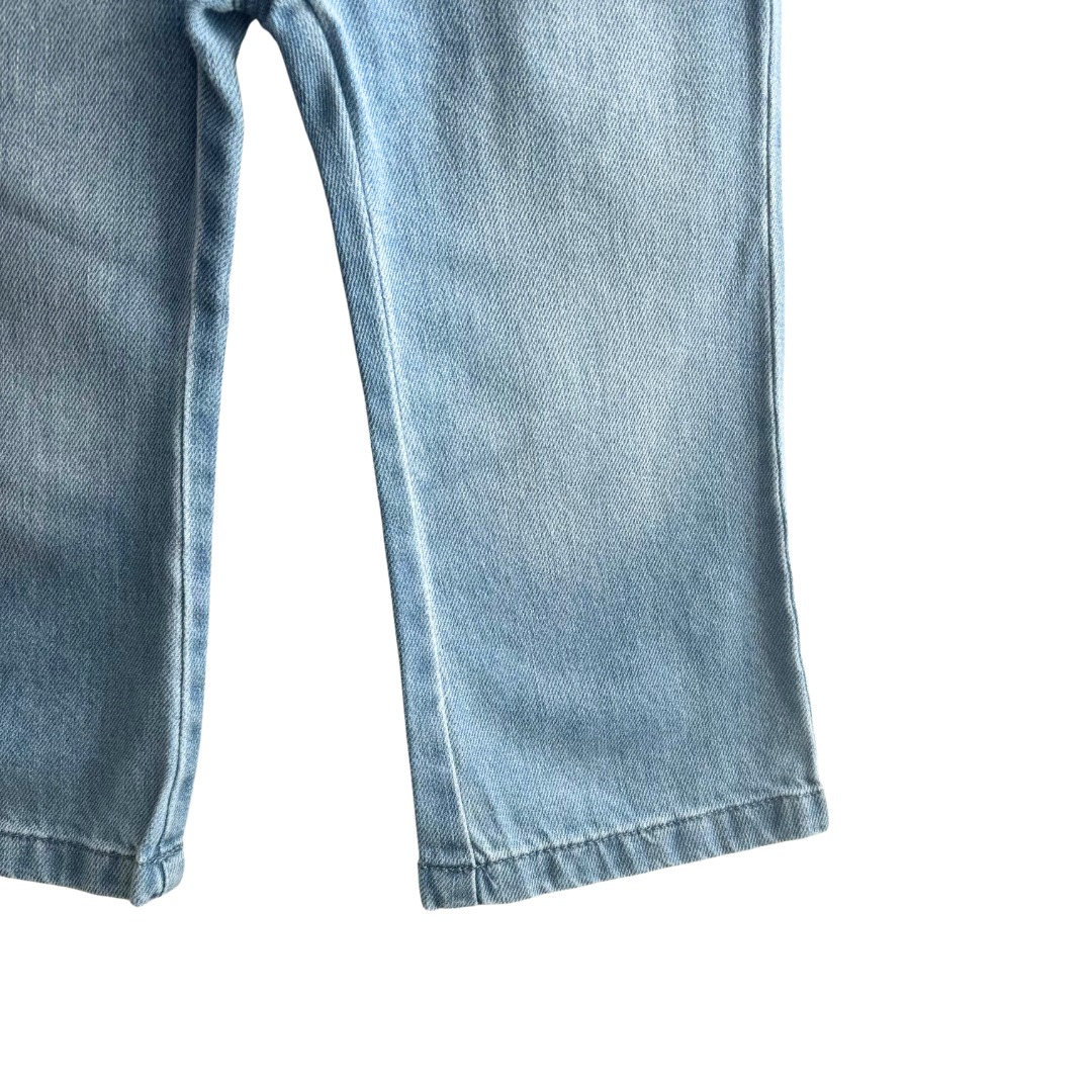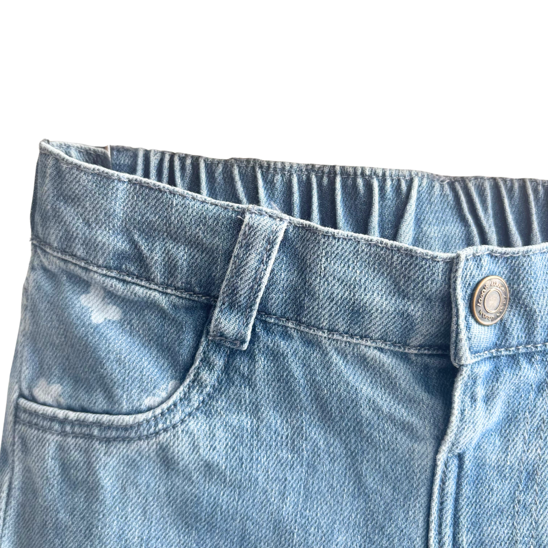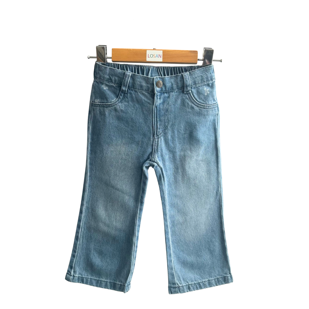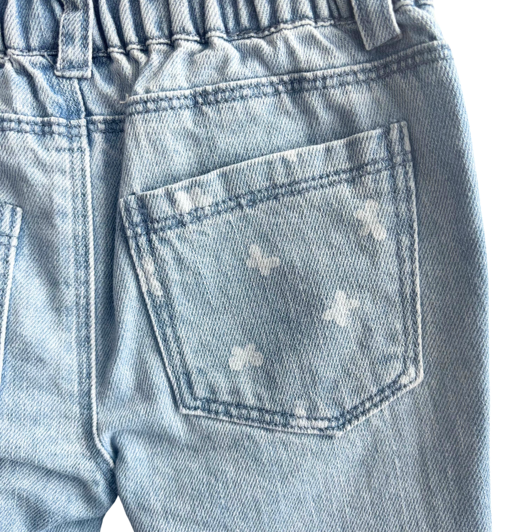 Pants denim bleu bébé fille avec bouton à la taille.