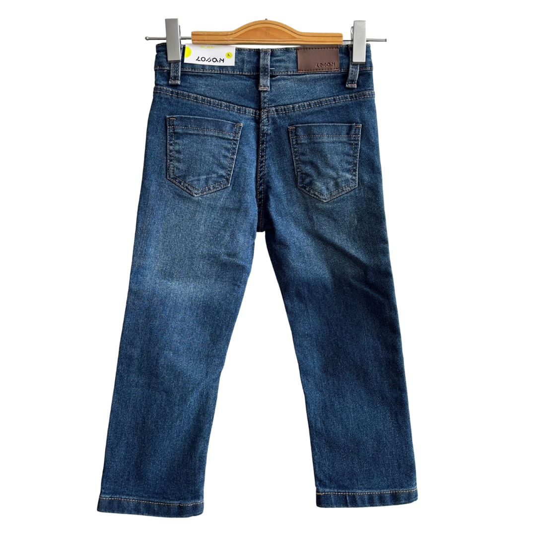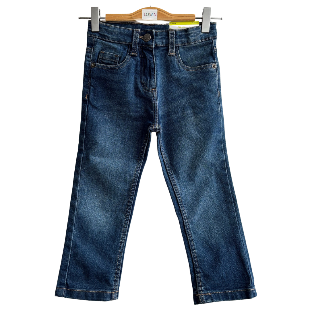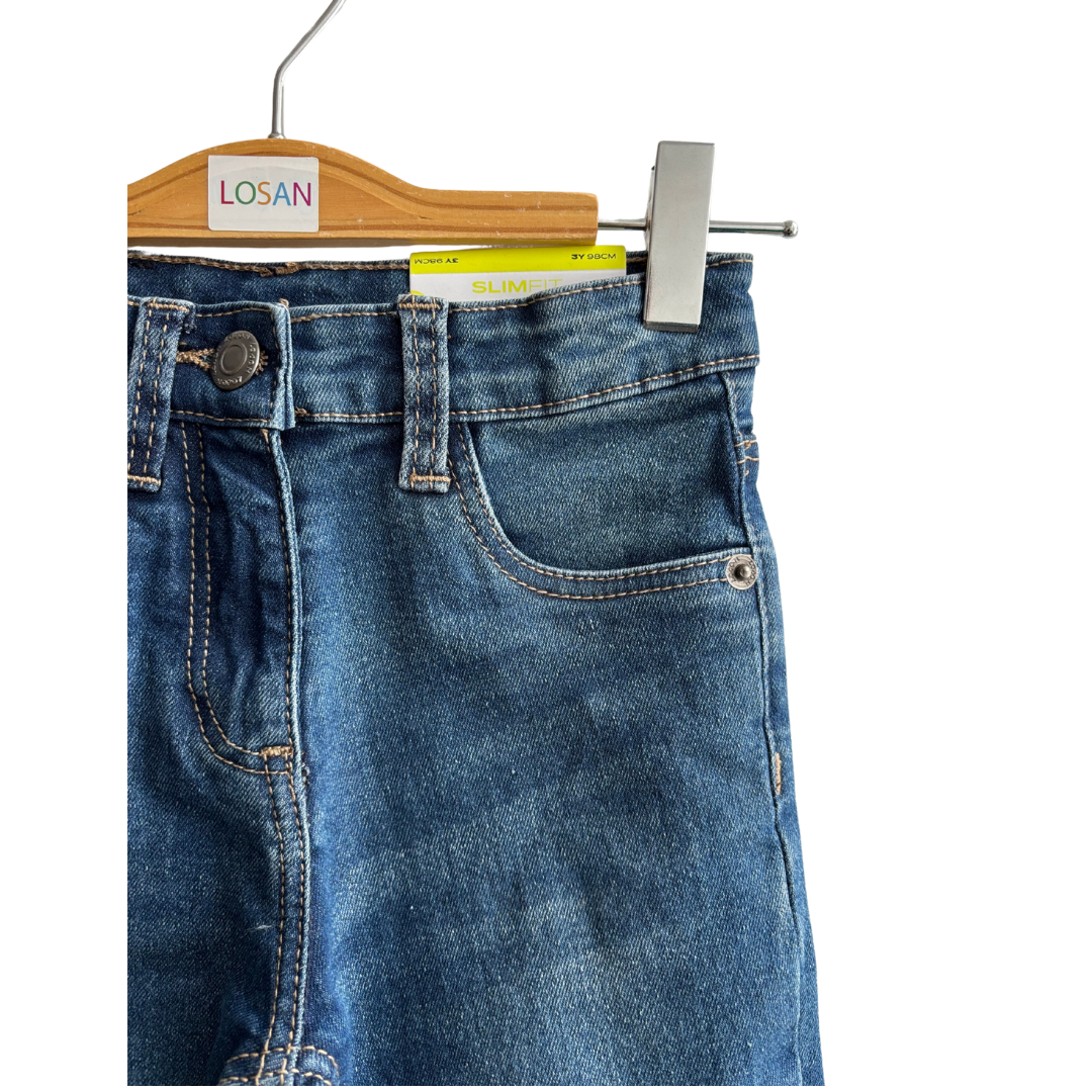 Jean bleu fille avec bouton ajustable à l’intérieur de la taille.