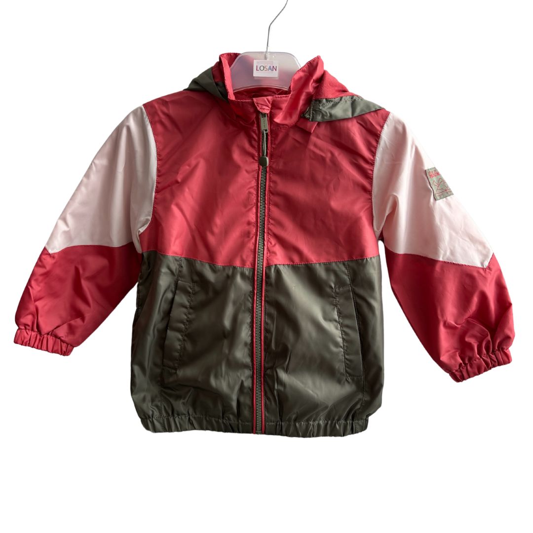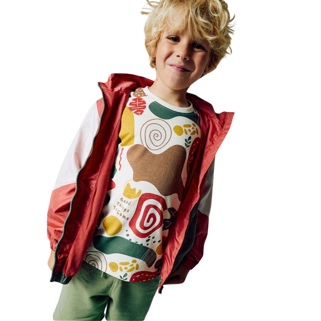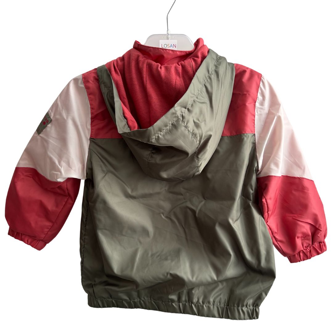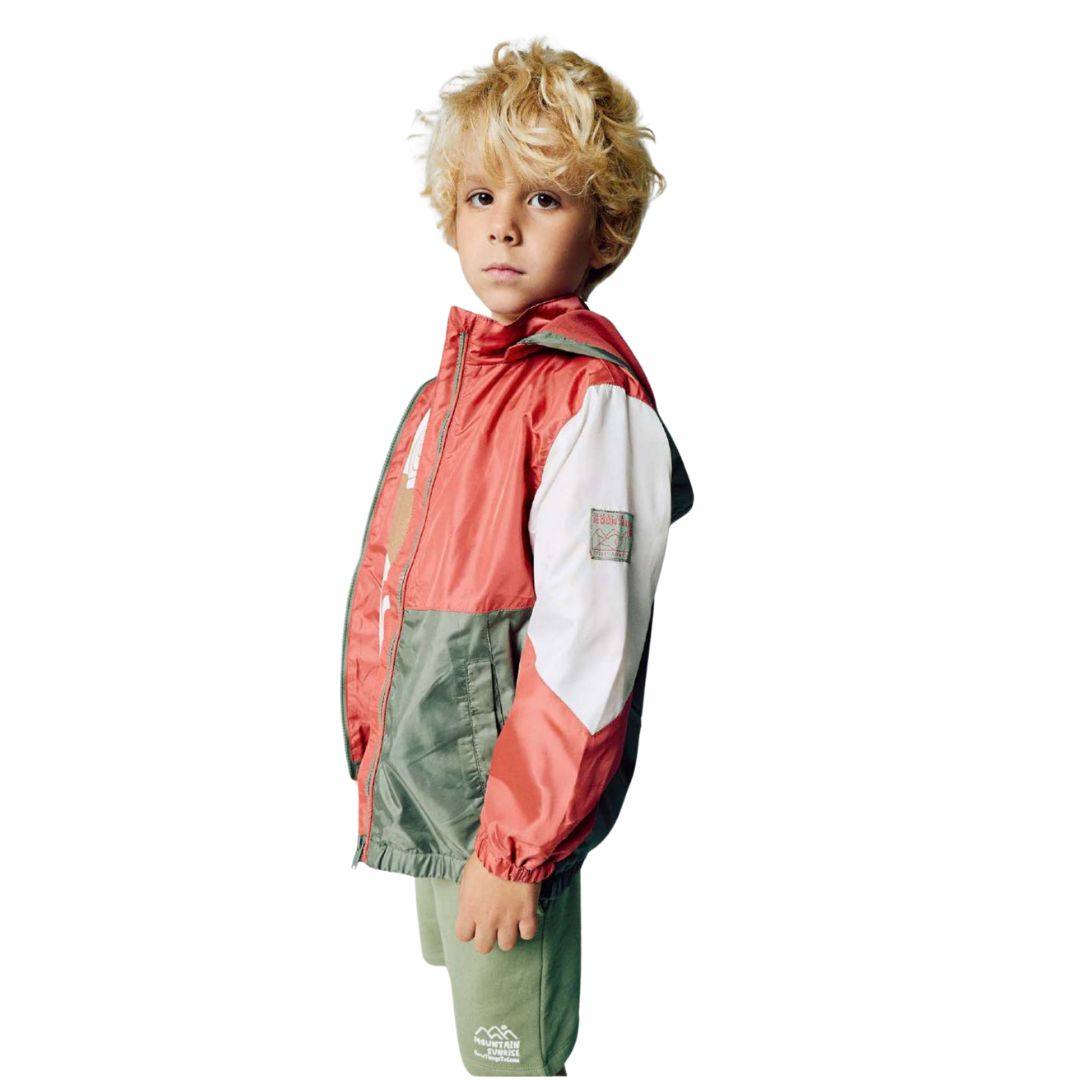 Parka garçon rouge et kaki avec poche sur les cotés.