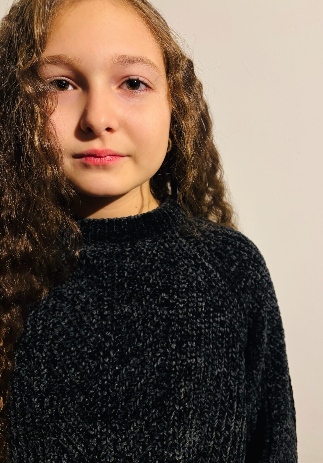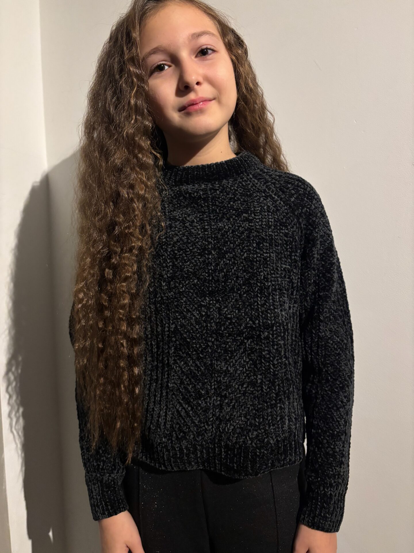 Pull noir matière lainage brillante.