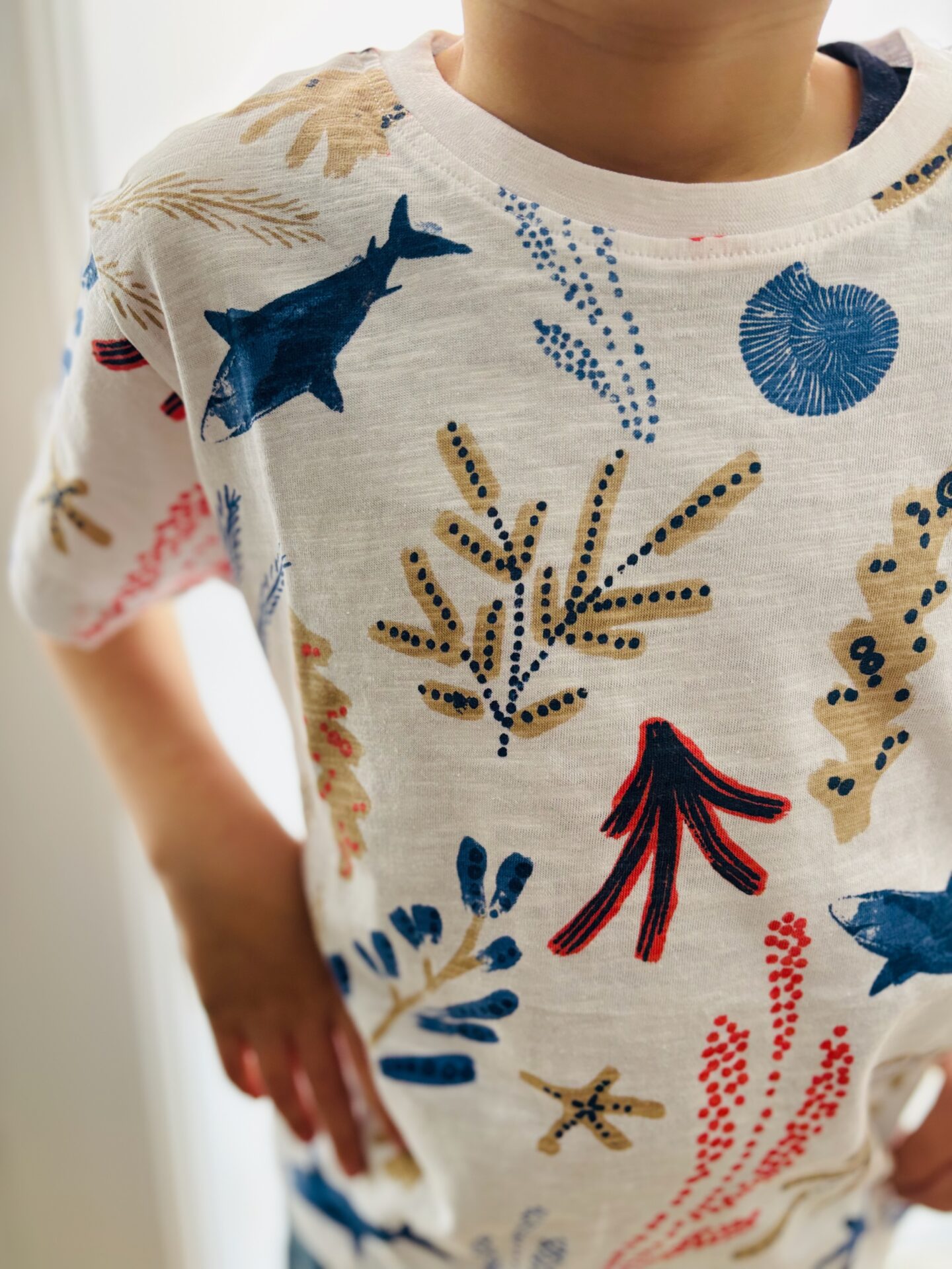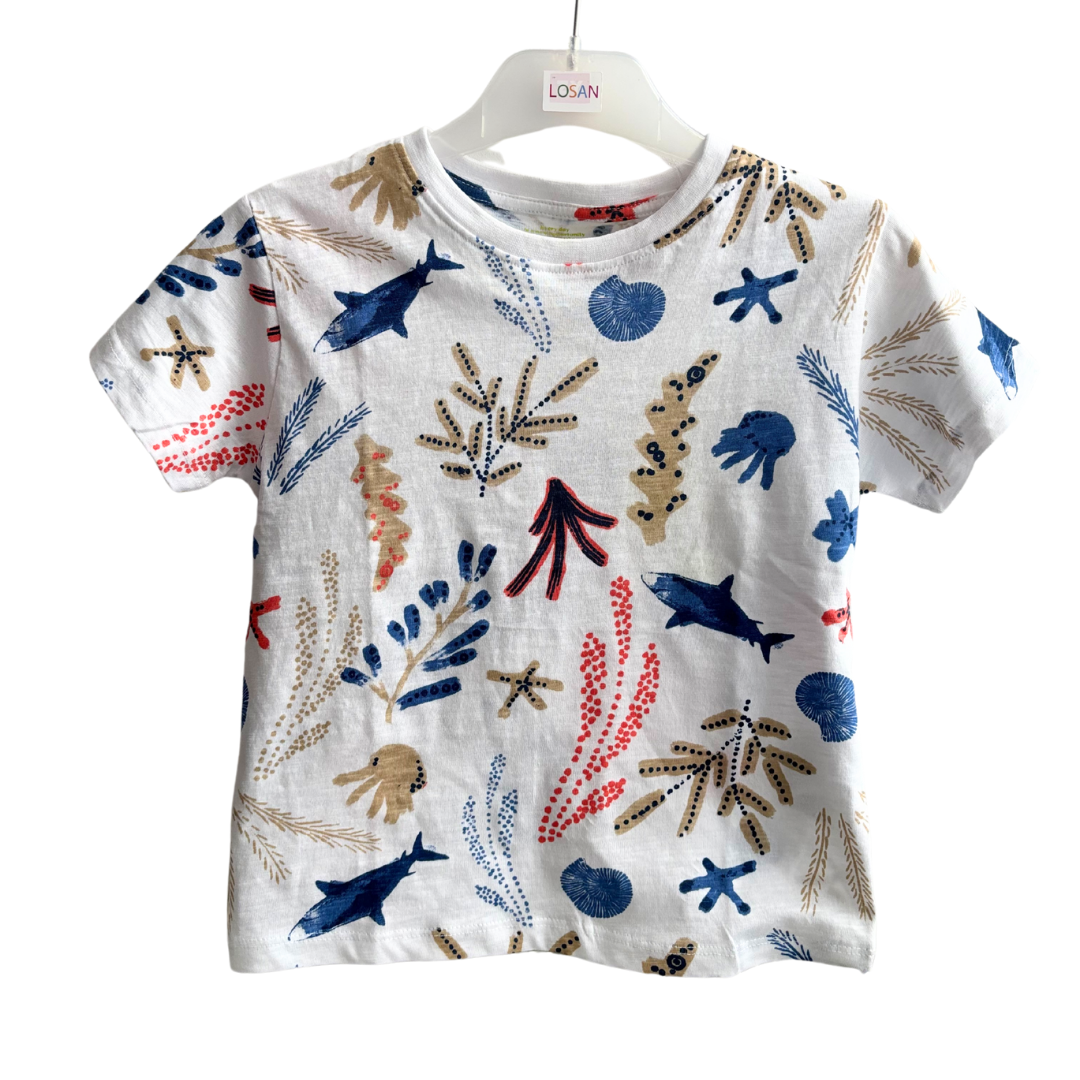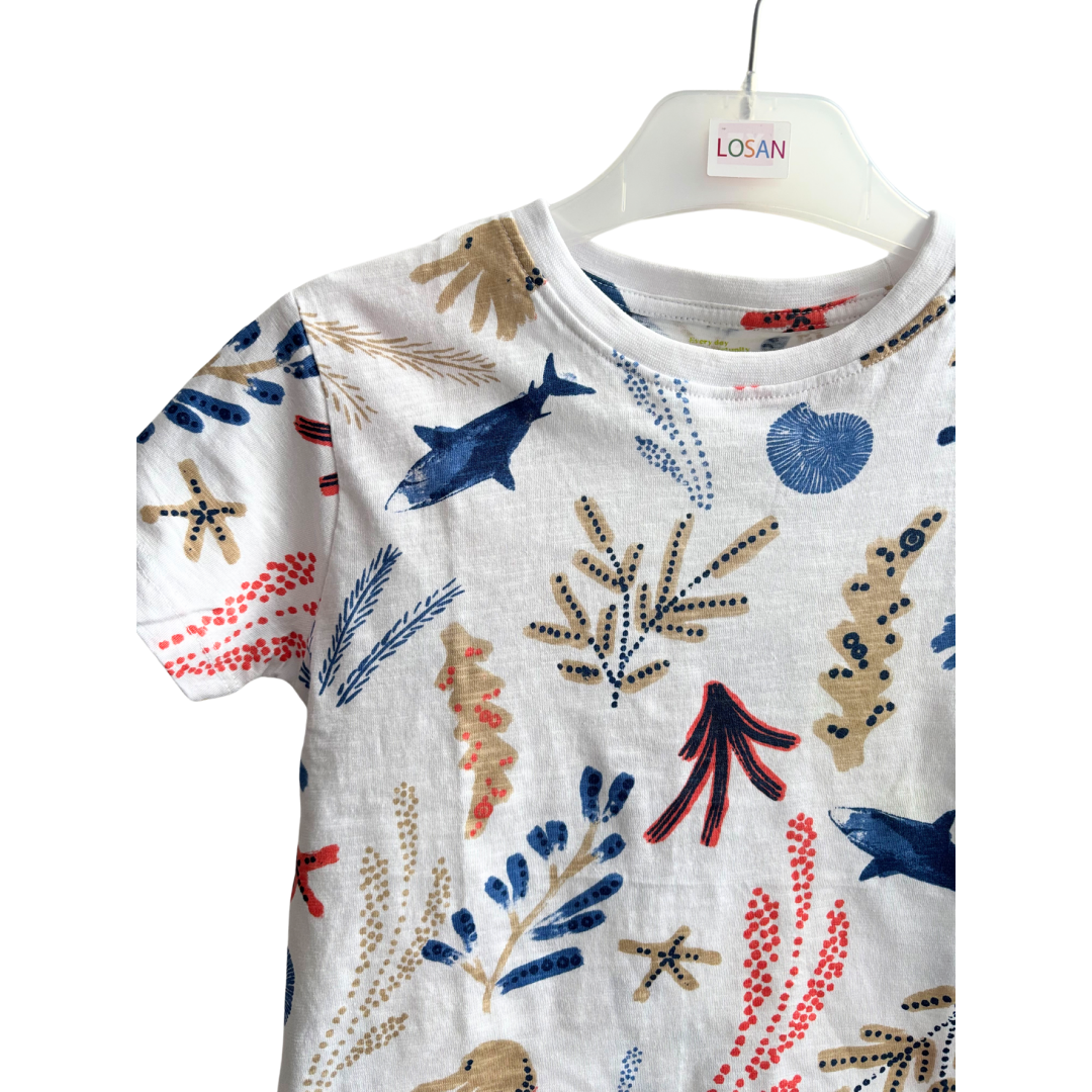 T-shirt jersey blanc avec dessin coloré.